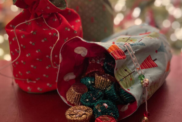 This quilt is a play on a drunkards path. I originally designed it using my sister, Julie’s fabric line Salt Air for Moda. Because it was a beachy fabric line and these half circles look like a clamshell quilt. I named it Clamshells.