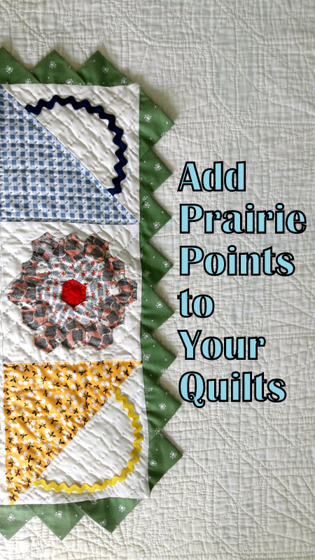 While my examples show them on the edge of a quilt. You can add them to borders and blocks. I’ve used a prairie point as a wing on one of the birds in the Fairy Garden quilt. It was a fun way to add a little dimension. Sadly at the moment I can’t find a picture of it.