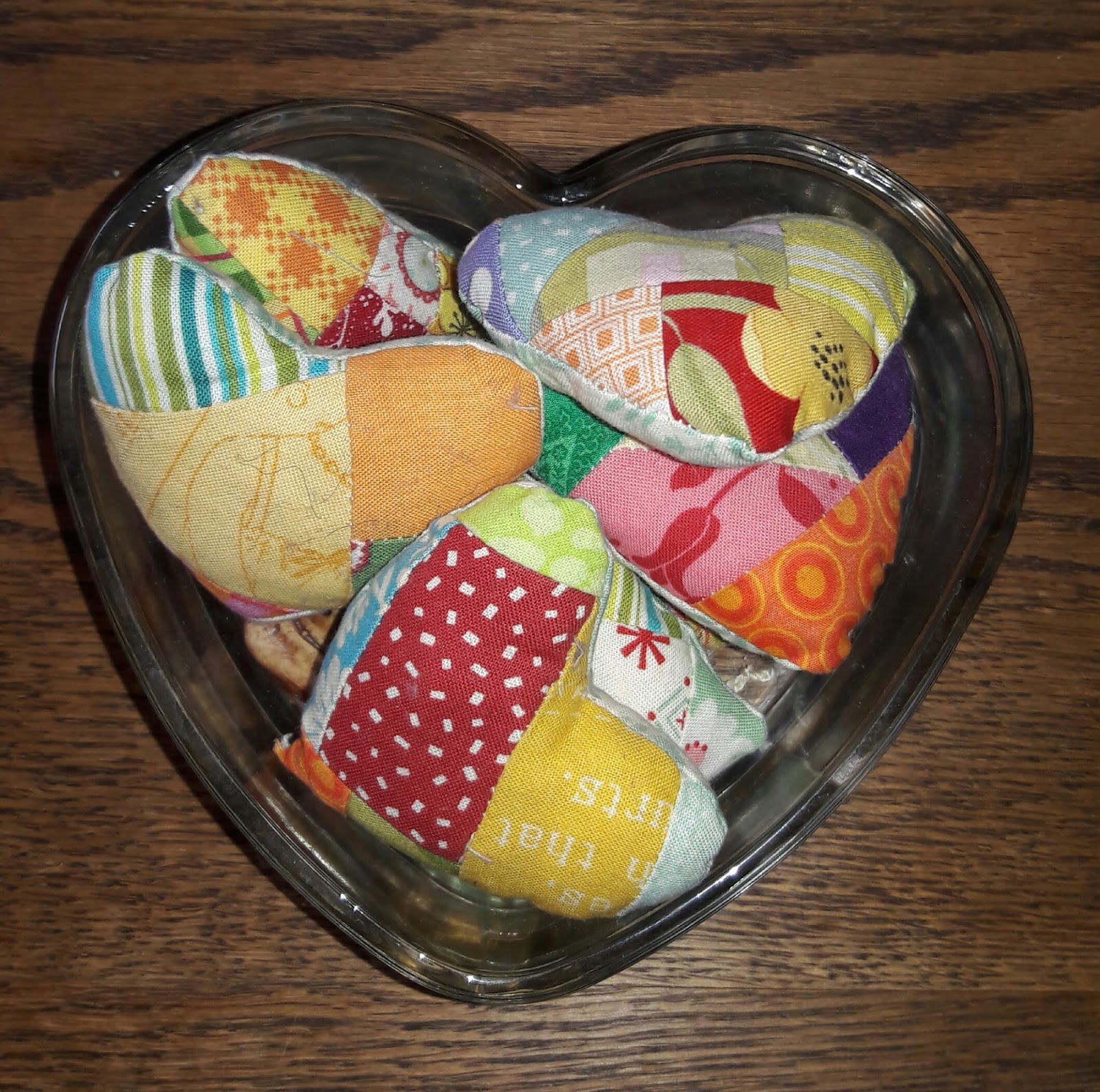With Valentines day just around the corner. I’m sending you a post full of love. It’s no secret I love to play with scraps. These little bits of love crumb hearts are a fun way to use up some scraps. Make them as pincushions to share with your quilting friends. Find the template here. It’s the same one I used for my handwarmers. Find more ways to use your fabric crumbs here.