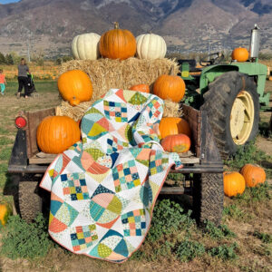Similarly, Just Desserts combines a 16 patch with a drunkard’s path in this scrap friendly quilt. I chose these blocks to symbolize the cakes and pies I have enjoyed from my grandpa’s bakery.