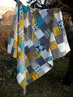 I needed a quilt Quilty Hug for a man. So I used 126 squares, a combination of a charm pack I had and leftovers I found in my pre-cut scrap bin. I still need to find border fabric.