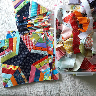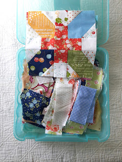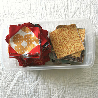 After unboxing my fabric finds, I started boxing up projects for my upcoming retreat. No teaching at this one. Just lots of fun sewing with friends. First these improvisational snowball blocks. I’m hoping to receive some more happy mail with more of the Kona poppy I’m using for the background. Otherwise I’ll only be able to make a few more blocks.